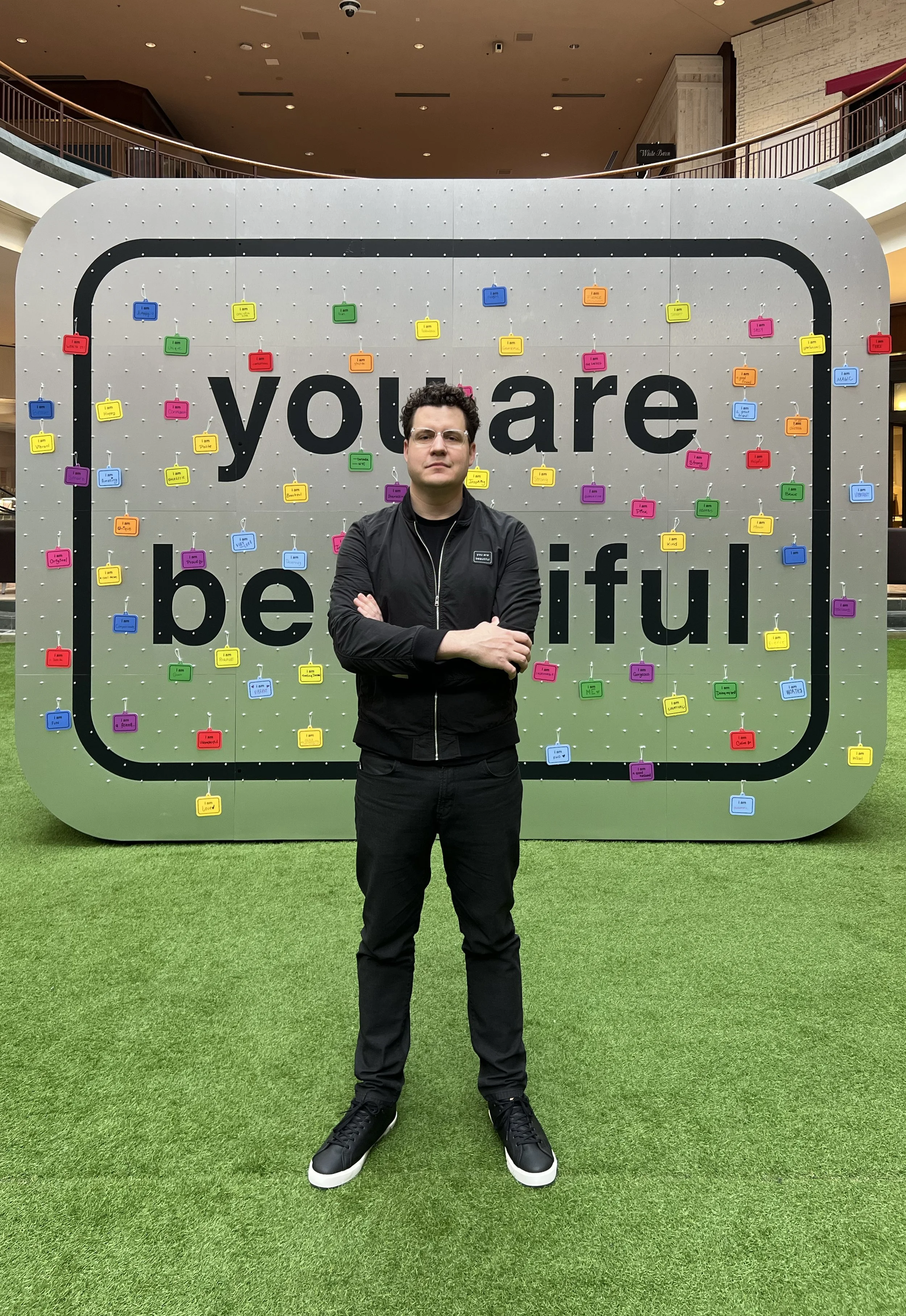 Matthew Hoffman is a public artist and designer best known as the custodian of You Are Beautiful, a global movement that began in 2002 and has since grown to over 10 million stickers and more than 100 permanent installations worldwide. His approachable, text-based works transform public spaces into places of positivity and connection, blending playful accessibility with refined craftsmanship.